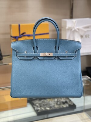 Hermes Birkin Blue 35 Sliver Chain