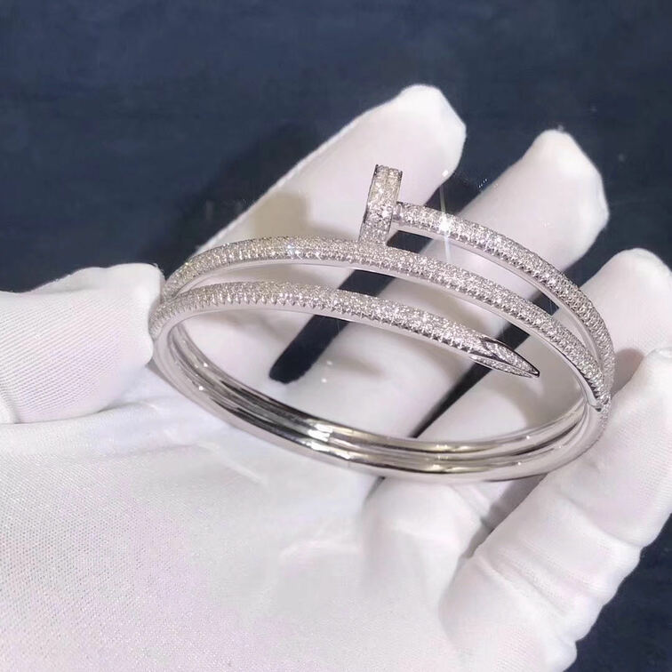 Cartier Juste Un Clou 18k White Gold With 624 Diamond Paved Bracelet là lựa chọn hoàn hảo cho những ai đang tìm kiếm một món trang sức đẳng cấp và độc đáo để thể hiện phong cách cá nhân.