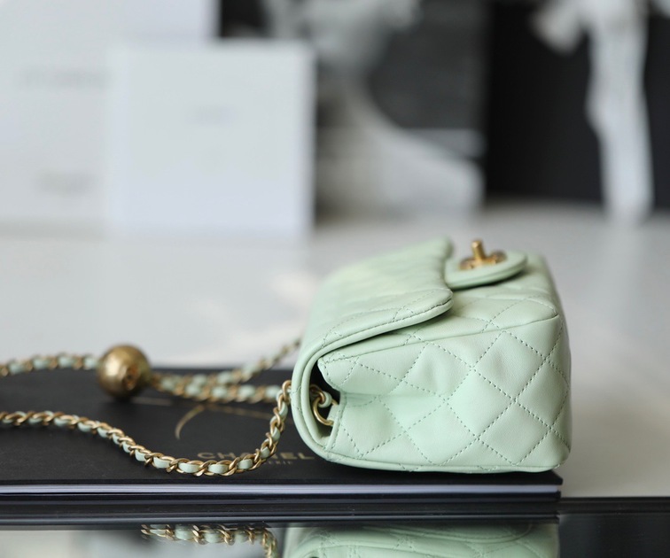 - Tên sản phẩm: Chanel Mini Flat Goatskin Green Ball Chain Ss2022