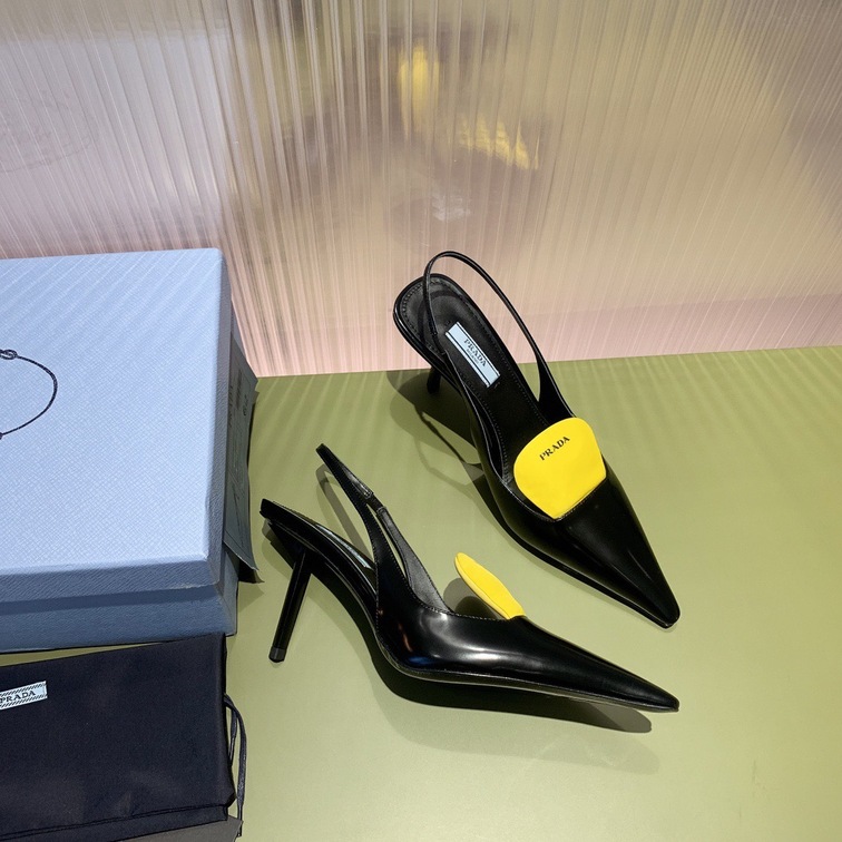 - Tên sản phẩm: Prada Pump Heels Leather Black Yellow SS2022
